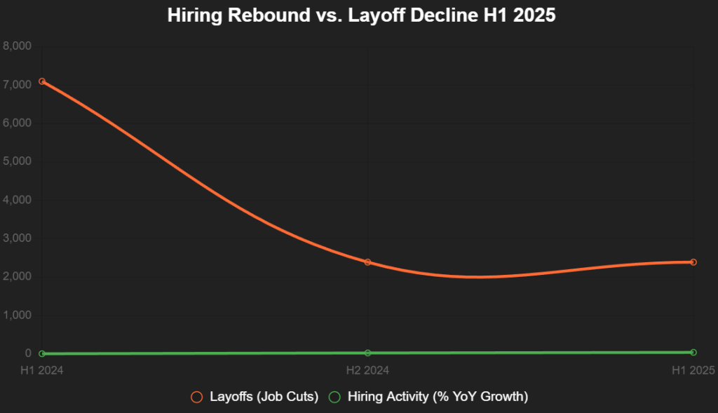 India’s startup hiring landscape in 2025 is a tale of cautious optimism—a rebound from the brutal winters of 2023-24, where 16,000+ layoffs scarred the ecosystem, but not yet a full-throated roar. As funding recovers modestly—$15.6 billion YTD across 1,940 equity rounds (down 22% YoY, Tracxn)—hiring sentiment has flipped: Layoffs plunged 67% in H1 2025 to 2,387 job cuts across 11 companies (from 7,100+ in H1 2024, Layoffs.fyi), while activity surged 35-40% YoY, per industry experts like Sachin Alug of NLB Services.